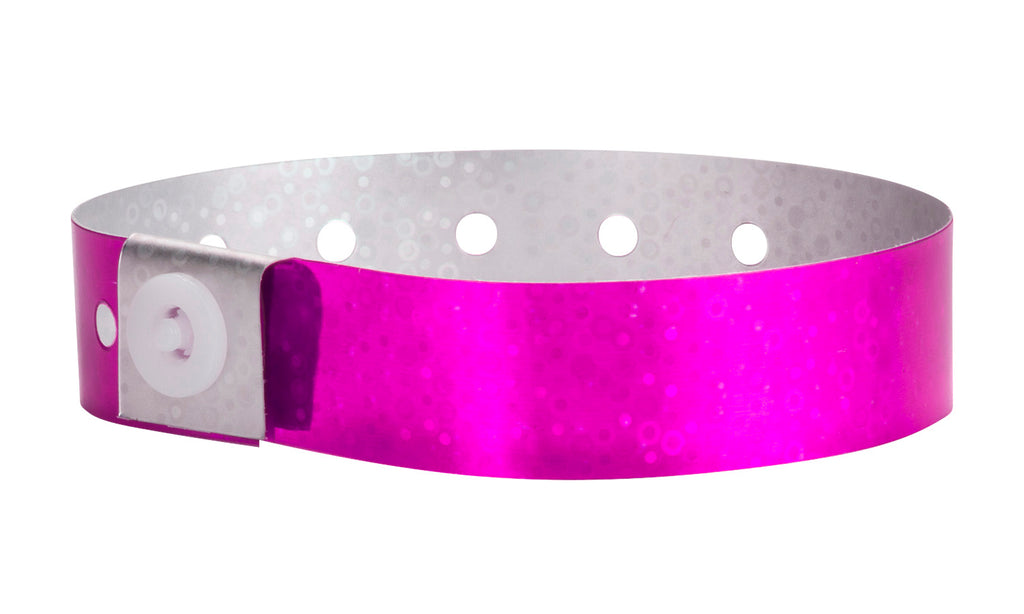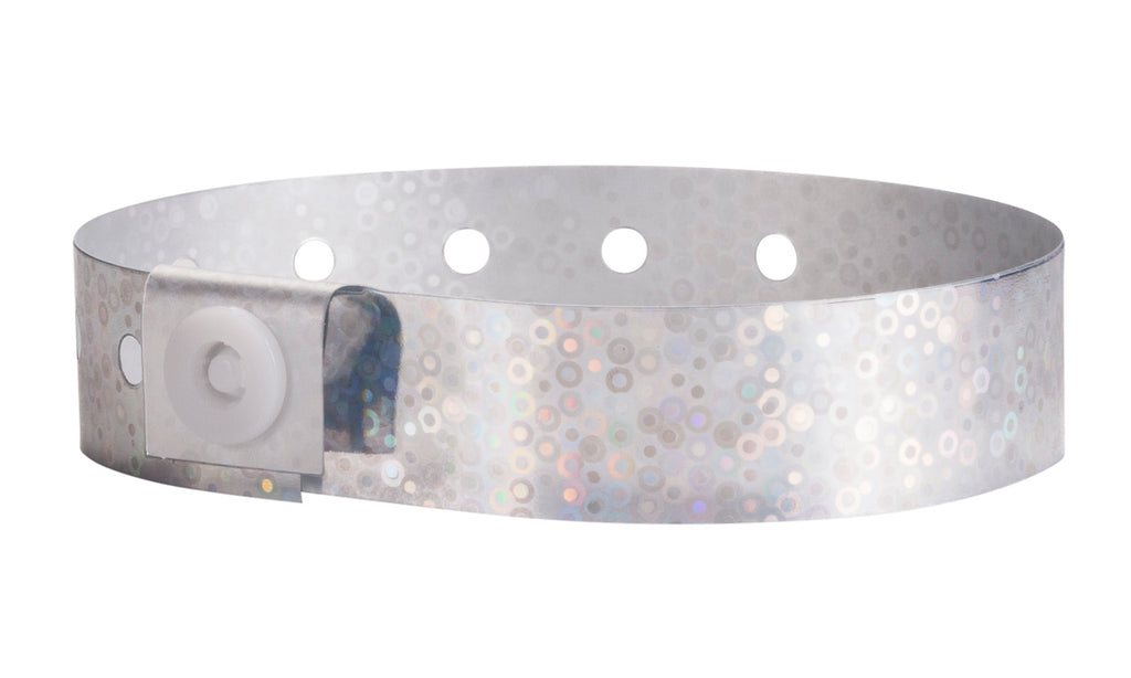 These sparkly plastic bands are an excellent choice for security and admission to upscale or elegant events. Plastic hologram wristbands arelight weight and comfortable, yet durable enough for extended use.