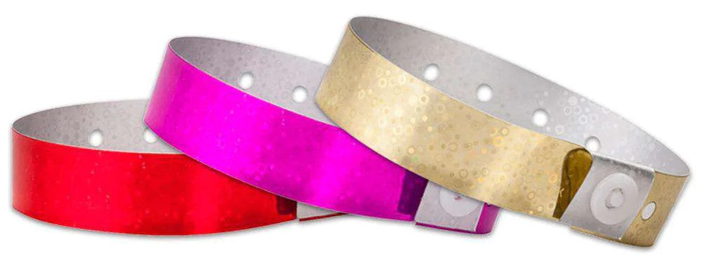 These sparkly plastic bands are an excellent choice for security and admission to upscale or elegant events. Plastic hologram wristbands arelight weight and comfortable, yet durable enough for extended use.