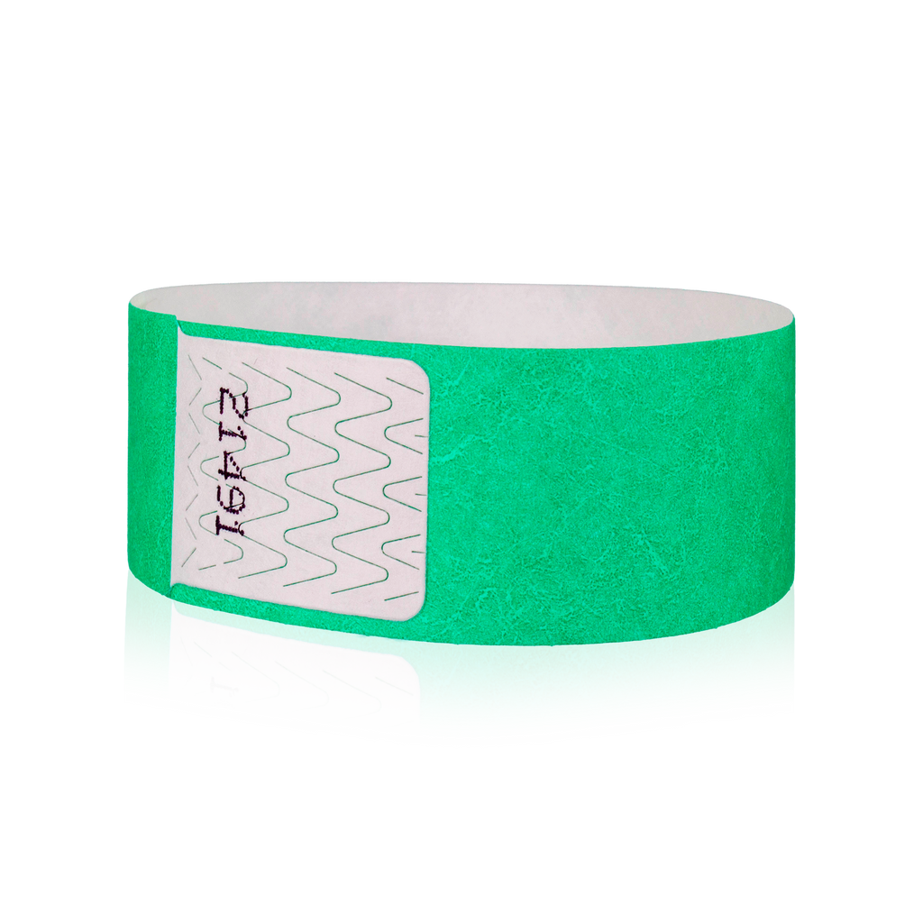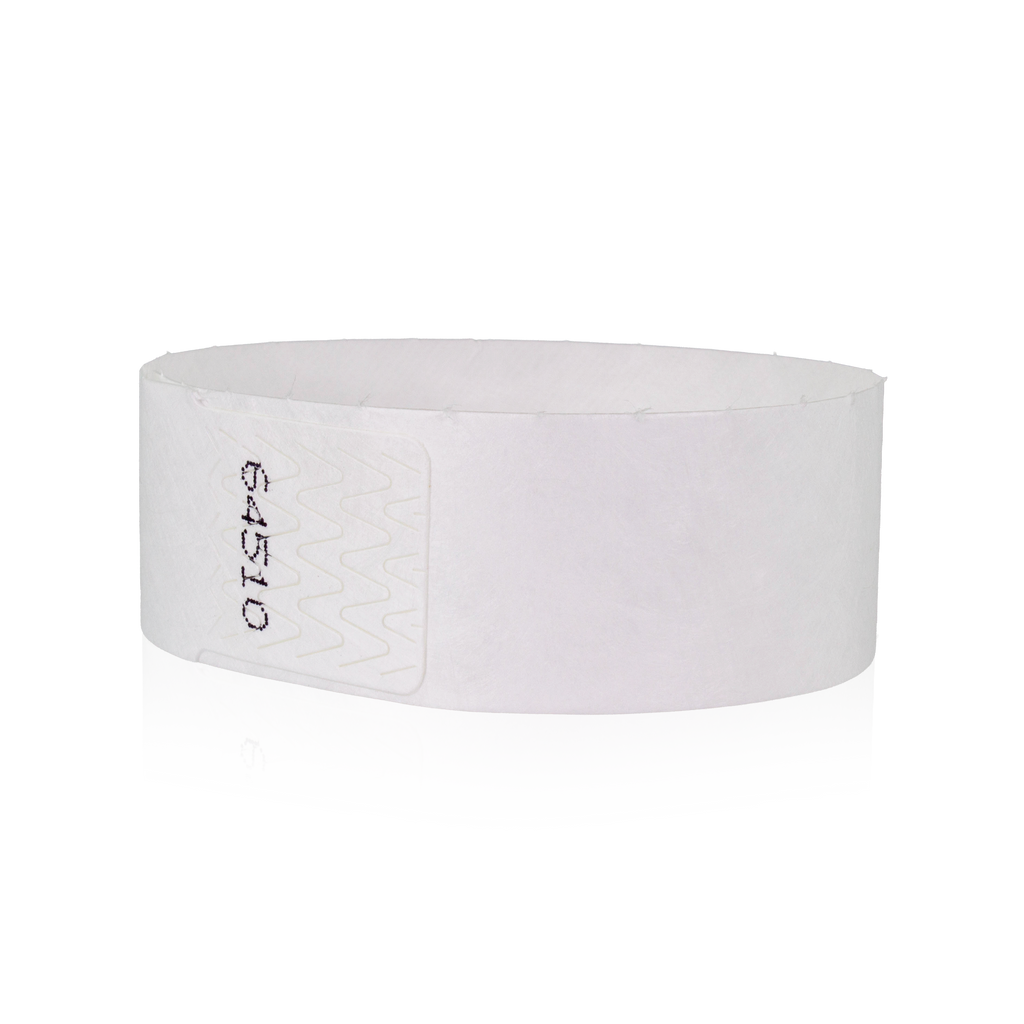 Qwik-Fit wristbands have a special die-cut over the adhesive closure making them easier to attach and with less chance for hair or skin pull.